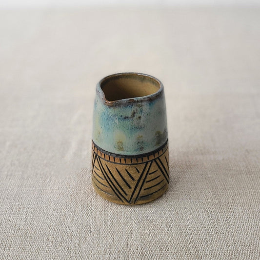 Sold outSeafoam Blue Rustic Carved Mini Jug