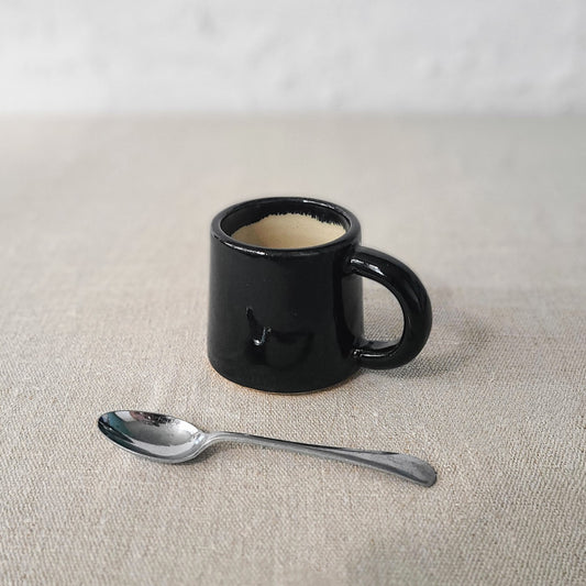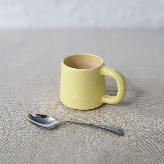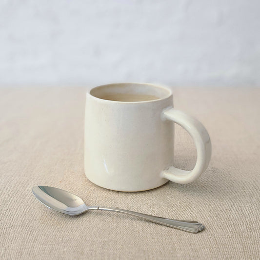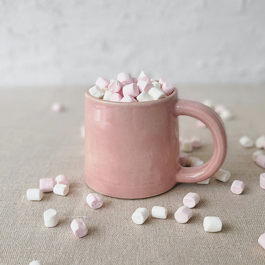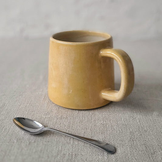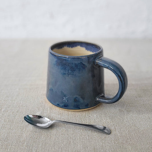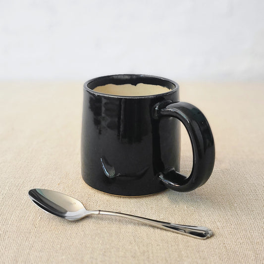 Our handcrafted ceramic mugs are made in our UK studio from durable stoneware clay and finished with a glossy glaze for a smooth, lasting shine. Each mug has clean lines, a wide base and a comfortable handle, designed to sit beautifully in your hand and keep your drink warm from the first sip to the last.