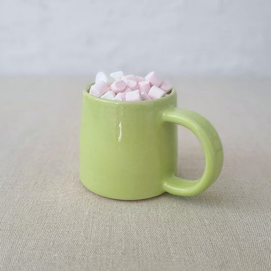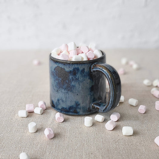 Our handcrafted ceramic mugs are made in our UK studio from durable stoneware clay and finished with a glossy glaze for a smooth, lasting shine. Each mug has clean lines, a wide base and a comfortable handle, designed to sit beautifully in your hand and keep your drink warm from the first sip to the last.