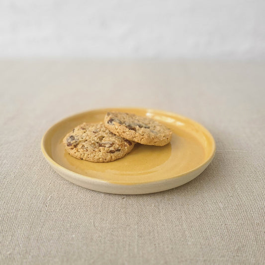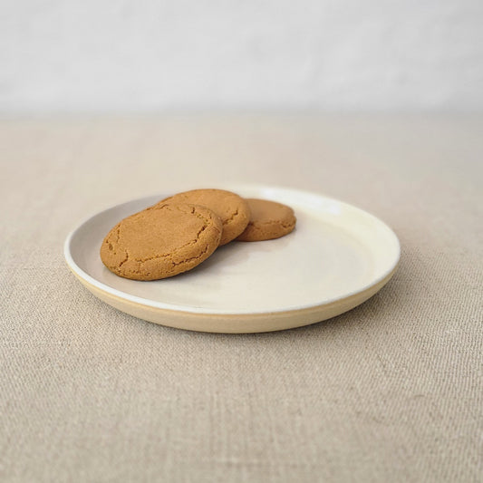 All our handmade ceramic plates have a raised foot ring. This provides stability and elevation to help with heat dispersion and prevents plates suctioning onto surfaces. Each foot ring is sanded smooth to prevent scratching of surfaces when in use.