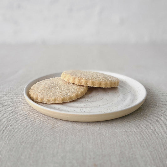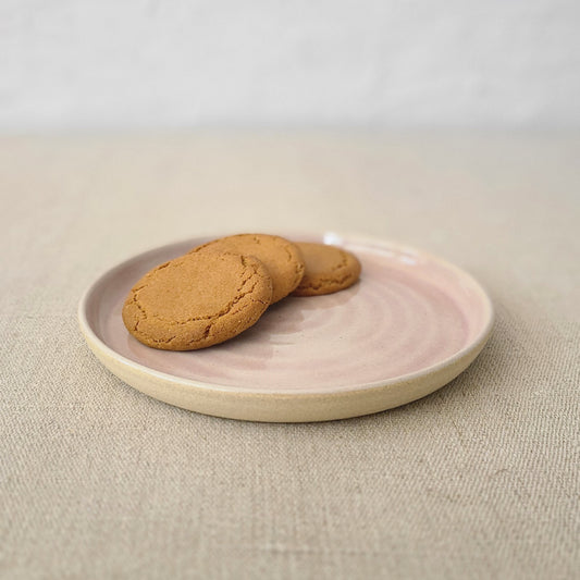 All our handmade ceramic plates have a raised foot ring. This provides stability and elevation to help with heat dispersion and prevents plates suctioning onto surfaces. Each foot ring is sanded smooth to prevent scratching of surfaces when in use.