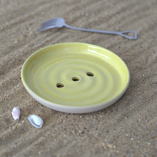 Yes, all our handmade ceramic soap dishes feature a foot ring to elevate the dish and allow water and moisture to drain through small holes in the bottom, keeping your soap bar dry, firm, and ready to use every time.