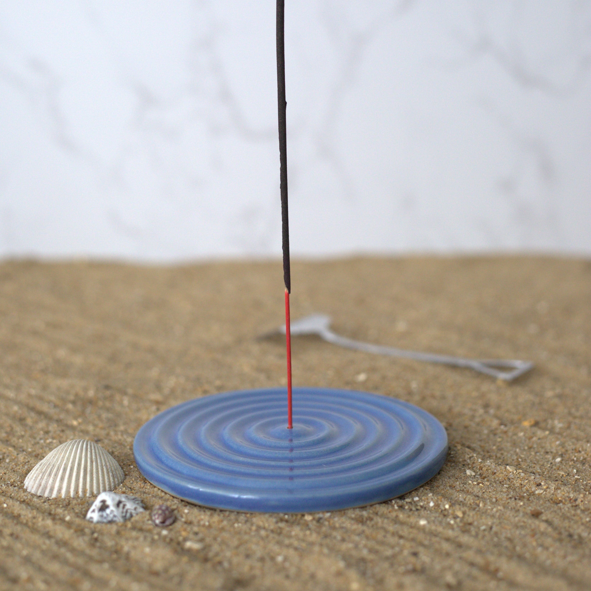 Each burner features a simple ridged design that holds one incense stick upright while the wide dish catches ash safely. Hand-thrown in stoneware clay and finished with a glossy glaze, they’re easy to clean and designed for everyday use.