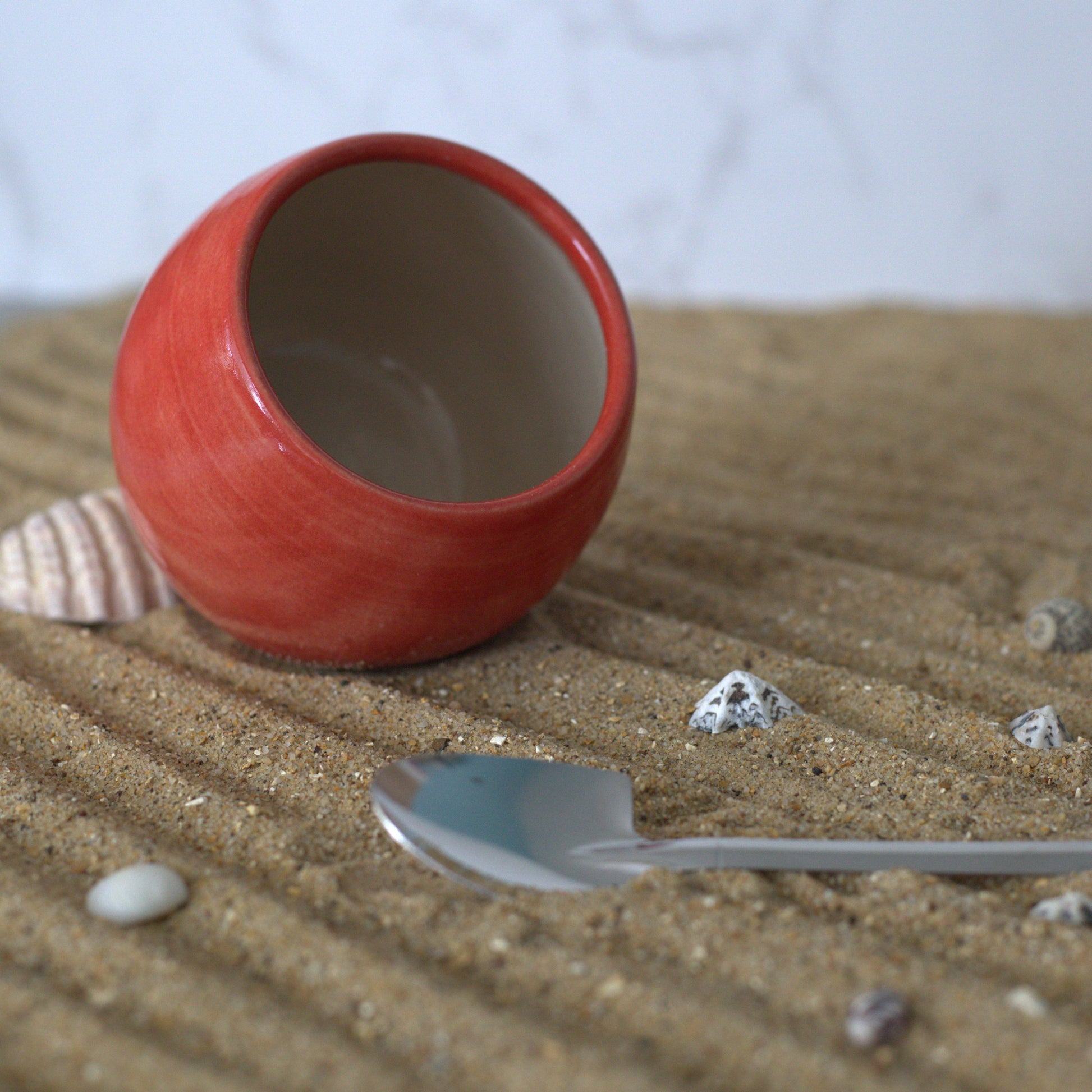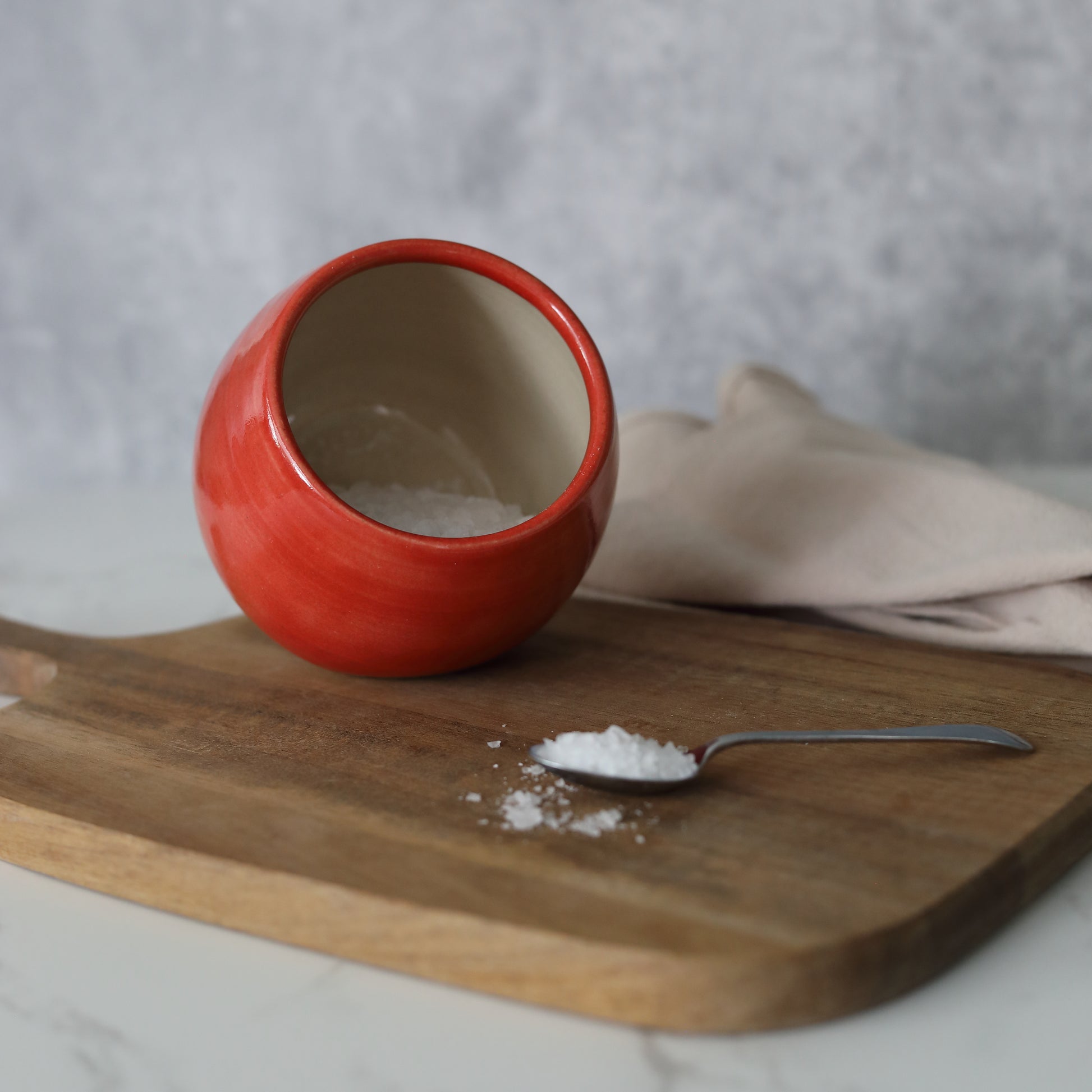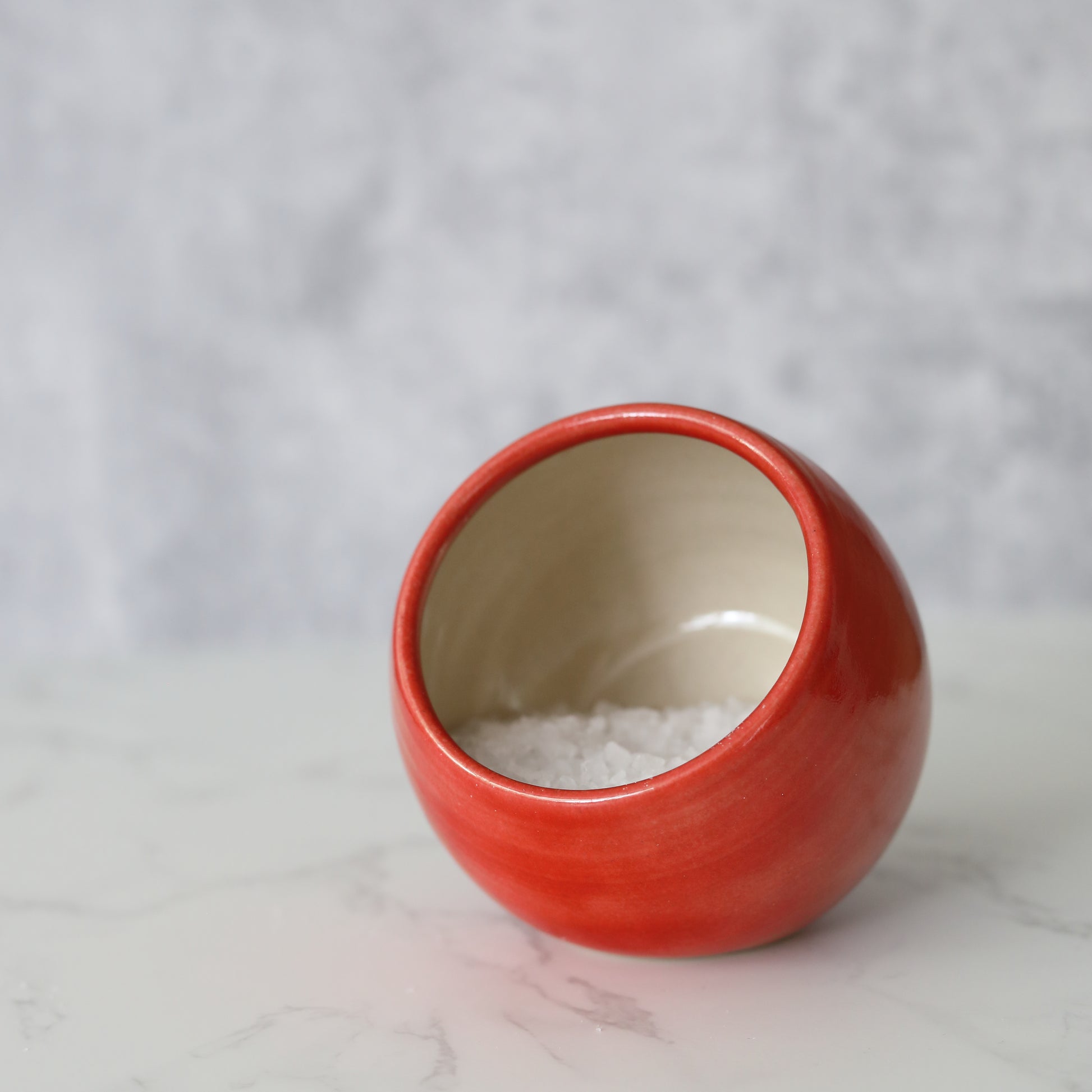Add a bold pop of colour to your kitchen with this handcrafted ceramic salt pig in glossy Cherry Red.