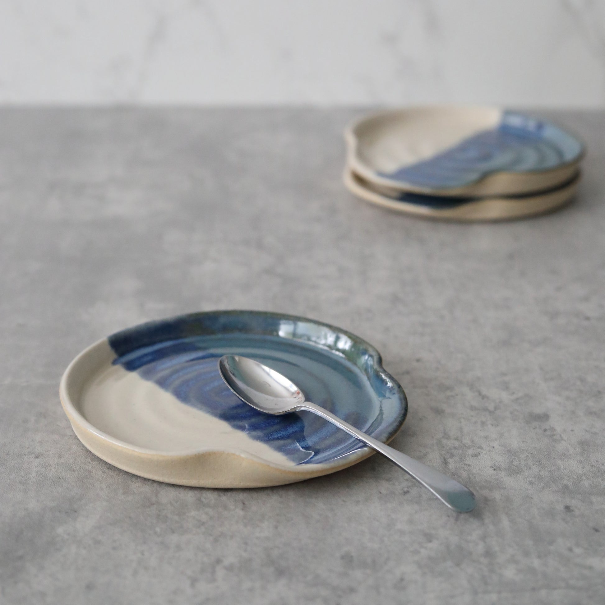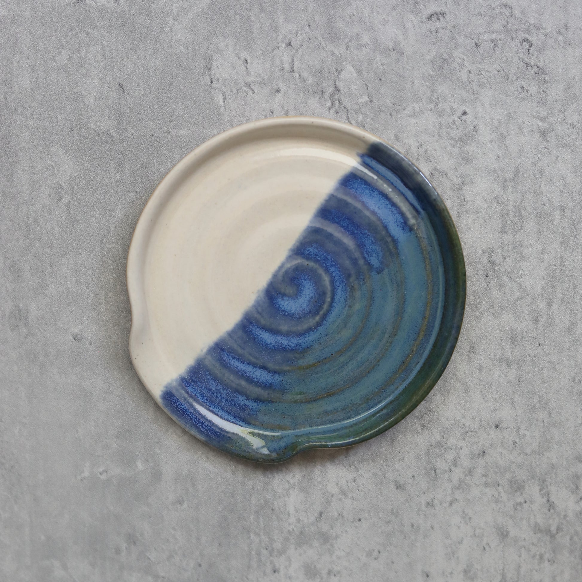 Bask in the magic of a moonlit winter night with our handcrafted midnight blue and snow white spoon rest.