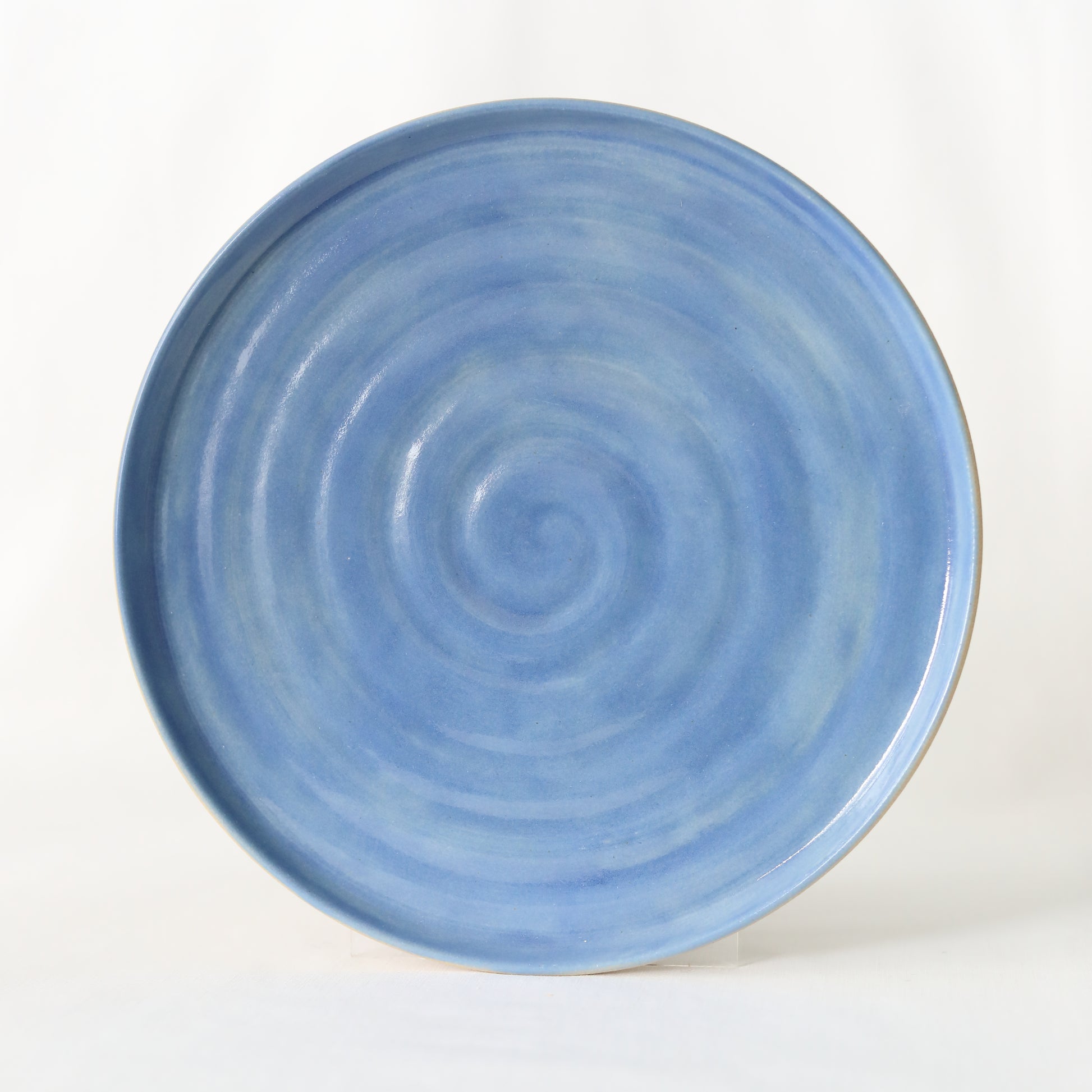 Our handcrafted stoneware plate in Pacific Blue offers a touch of the ocean in your home.