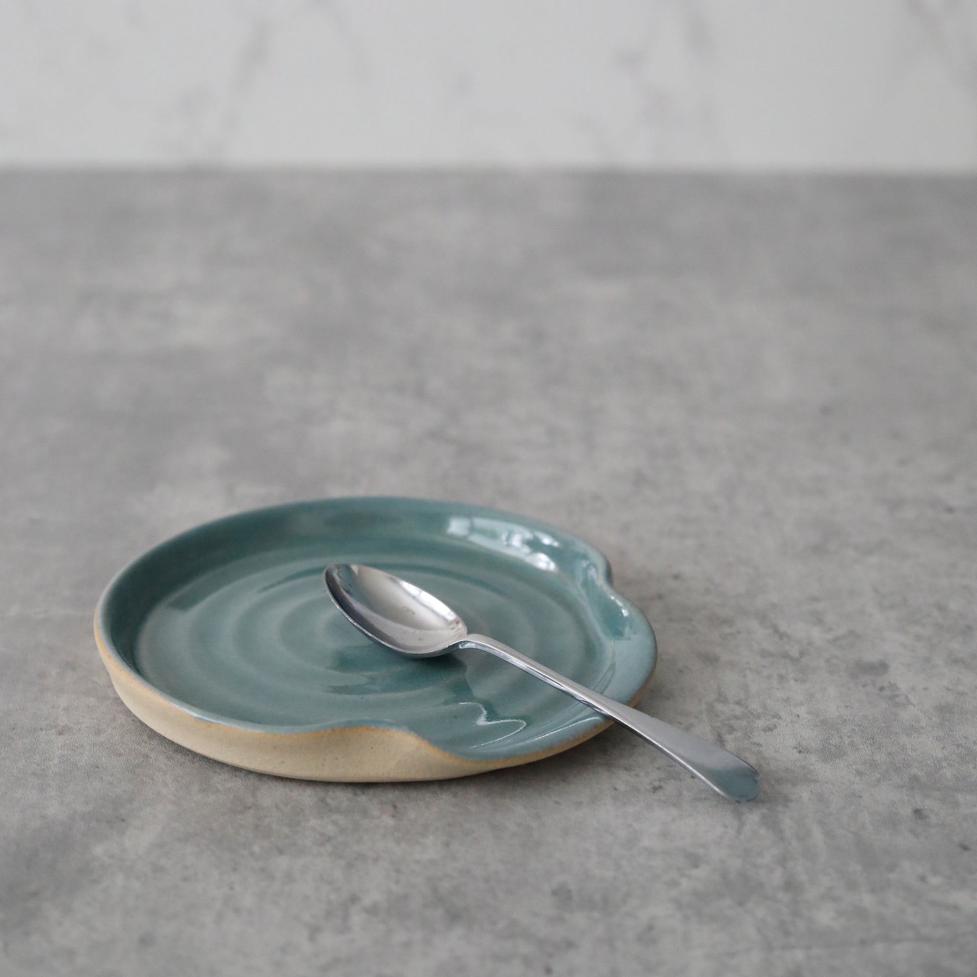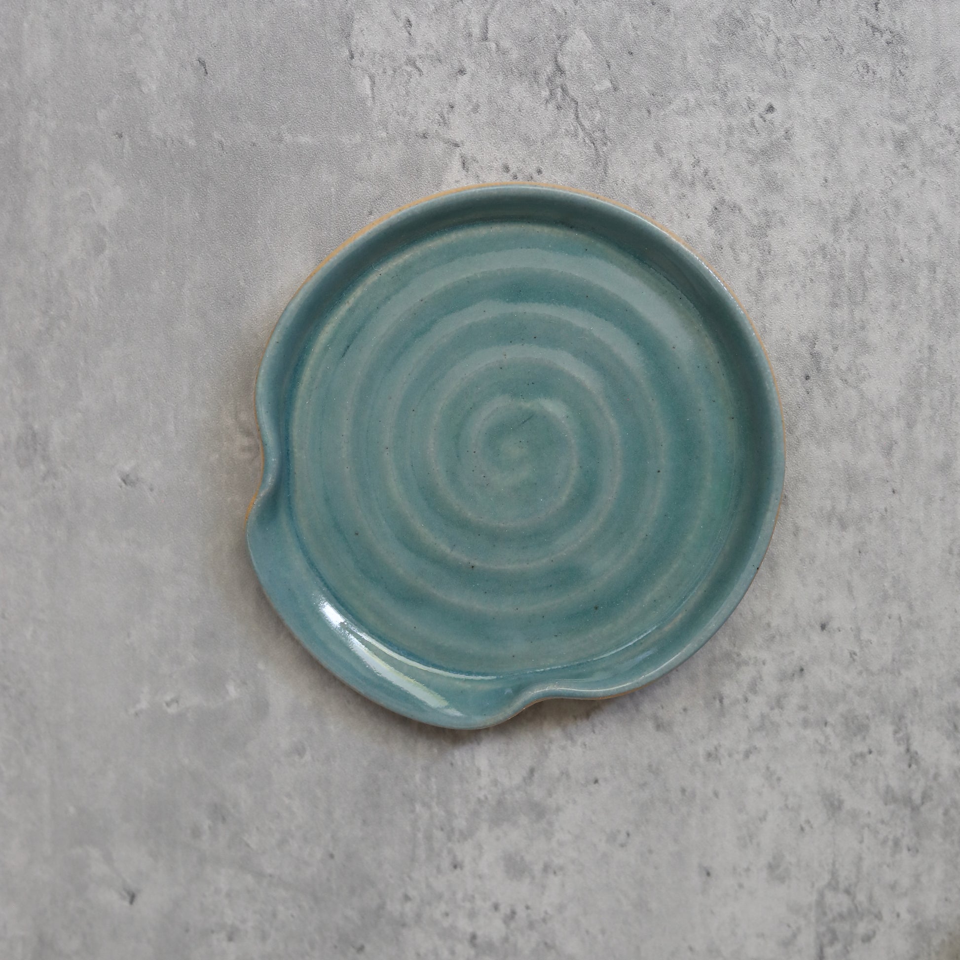 Our pale turquoise handmade spoon rest brings the calmness of tropical beaches to your kitchen with its soothing watery blue tones.