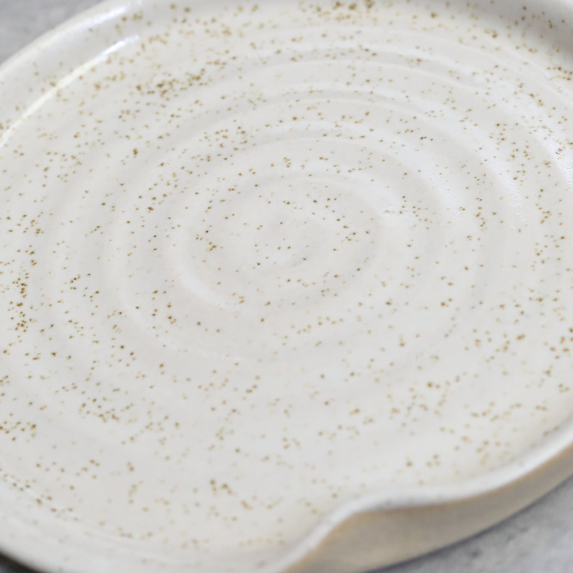 Earthy and simplistic, our pepper white spoon rest brings subtle texture to your kitchen. With its creamy white background punctuated by tiny dark speckles, this spoon rest is defined by its minimalist style.