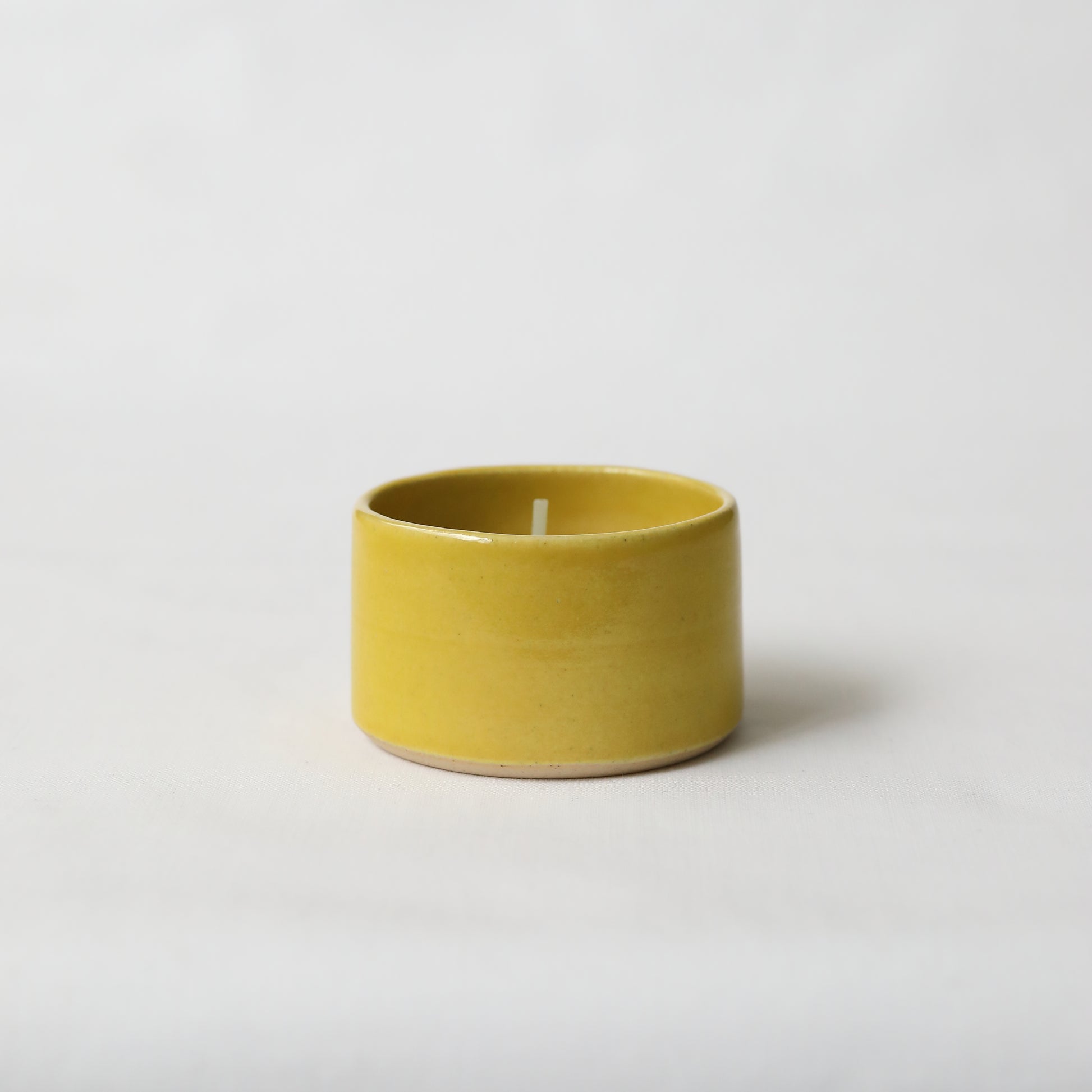 Our Sun Yellow handmade tea light holder features a glossy, golden glaze with bold, saturated colour and a smooth, luminous finish.